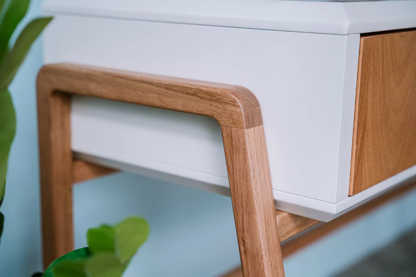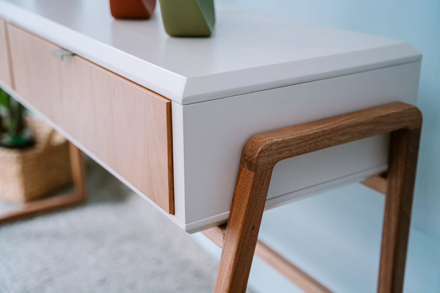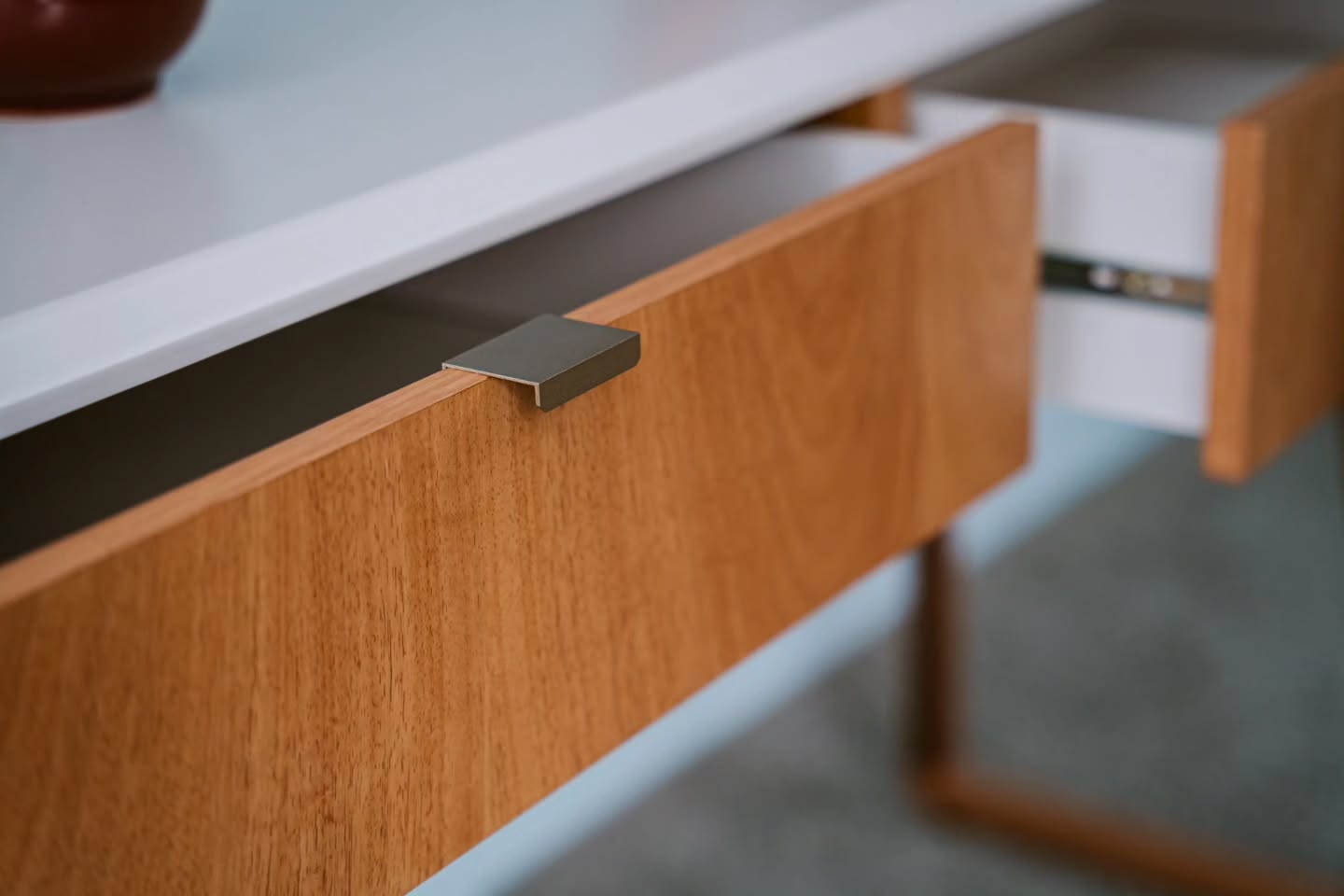 Fabricado em madeira, o aparador conta com duas gavetas espaçosas, ideais para organizar itens essenciais no dia a dia. Suas dimensões permitem fácil adaptação a diversos ambientes, como sala de estar, corredor ou quarto, agregando charme e praticidade ao lar.