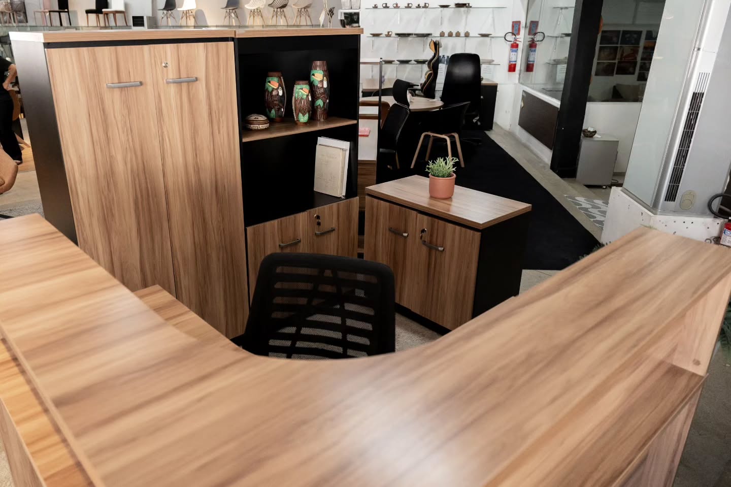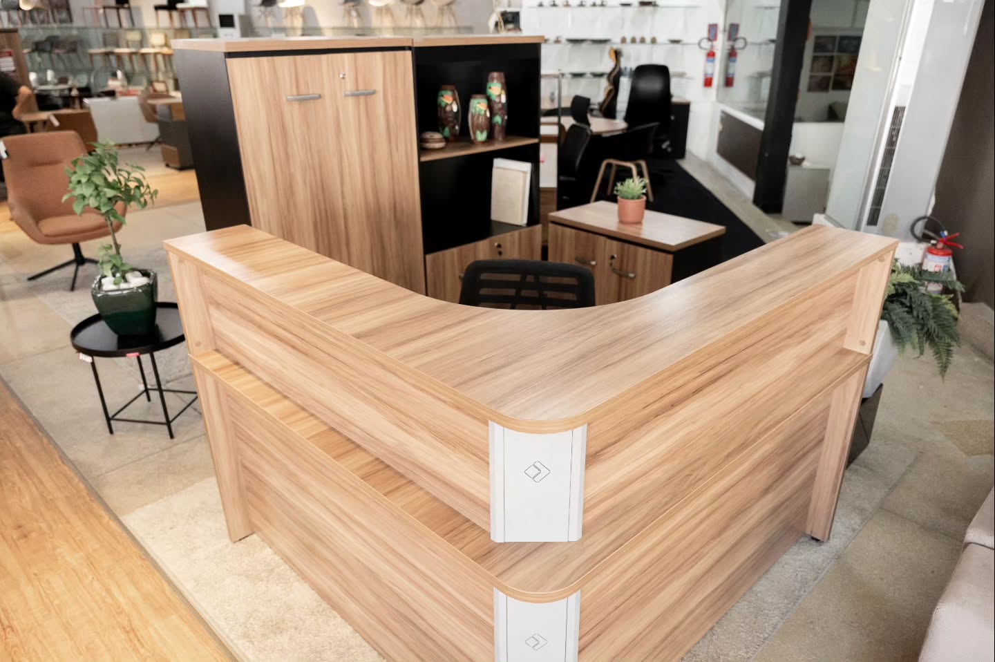 Cada detalhe foi cuidadosamente pensado para transmitir profissionalismo, organização e acolhimento desde o primeiro contato. Com estrutura robusta em MDF, o balcão vai além da funcionalidade: ele se torna a assinatura de excelência do seu espaço corporativo.