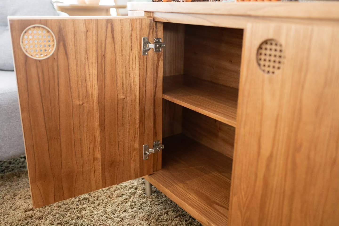 O móvel conta com três portas de pressão, que tornam o acesso prático e intuitivo. As bordas arredondadas e o detalhe em palha trama sextavada elevam a estética da peça, unindo beleza e funcionalidade. Com dimensões generosas, o Buffet Thor é ideal para quem busca um móvel marcante, funcional e atemporal.