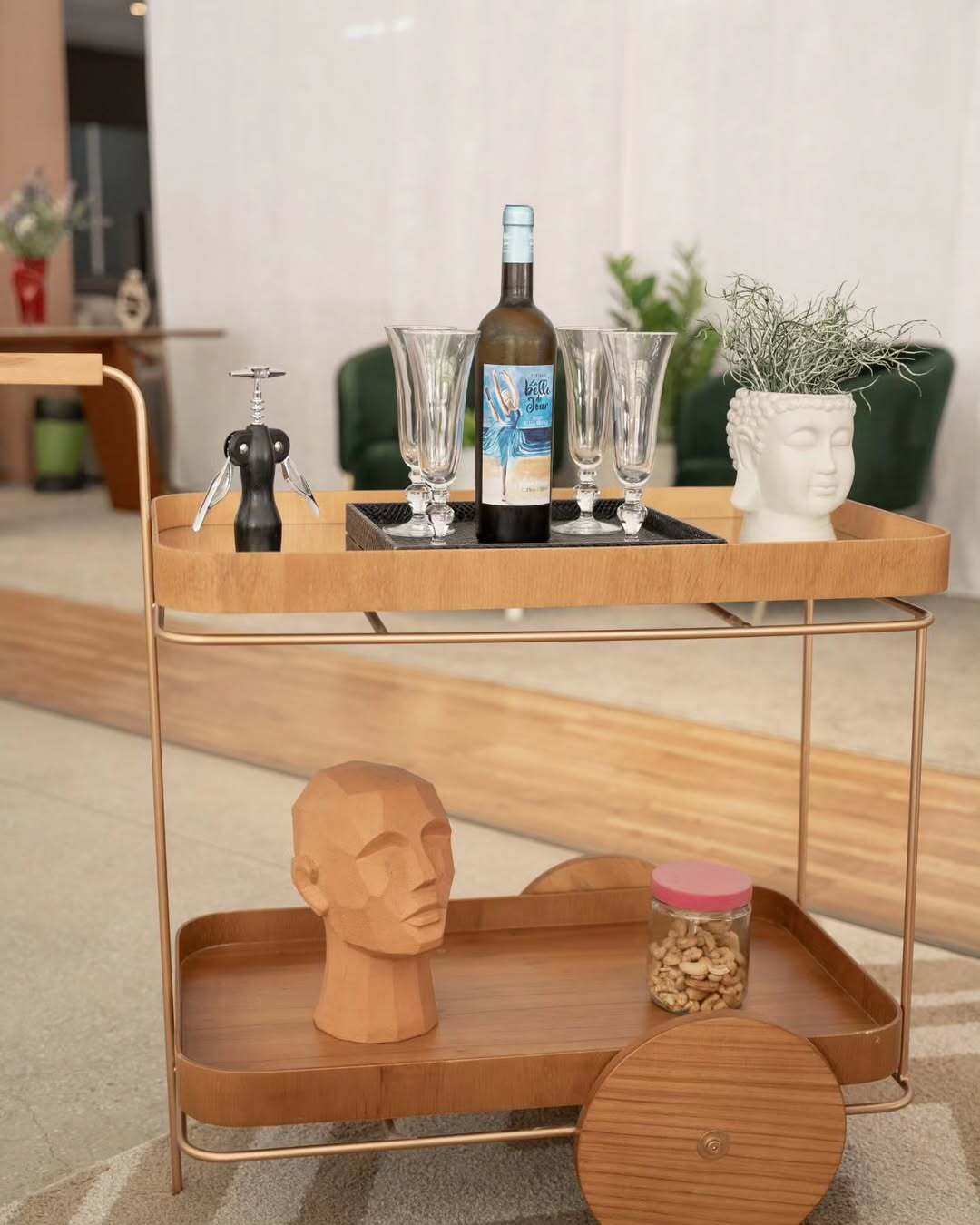 O Carrinho Lennon é a escolha ideal para quem deseja unir funcionalidade, charme e design sofisticado em um único móvel. Produzido em madeira maciça, com tampo em lâmina de madeira ou espelhado, o carrinho possui medidas bem proporcionadas que se adaptam perfeitamente ao ambiente. Além de facilitar o serviço ao receber convidados, ele transforma o espaço em um local mais aconchegante, elegante e convidativo, sendo perfeito para uso como carrinho de chá ou bar.