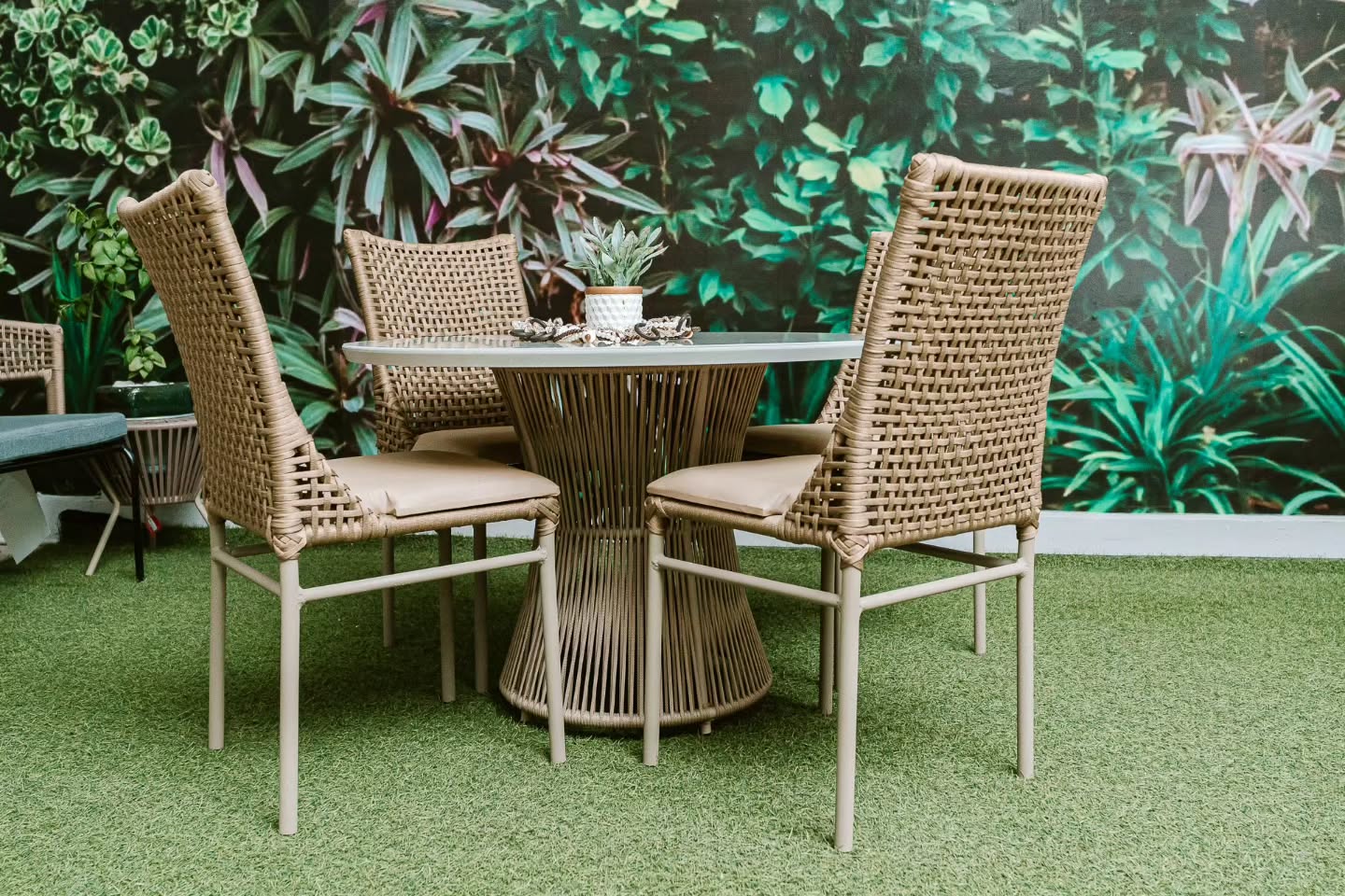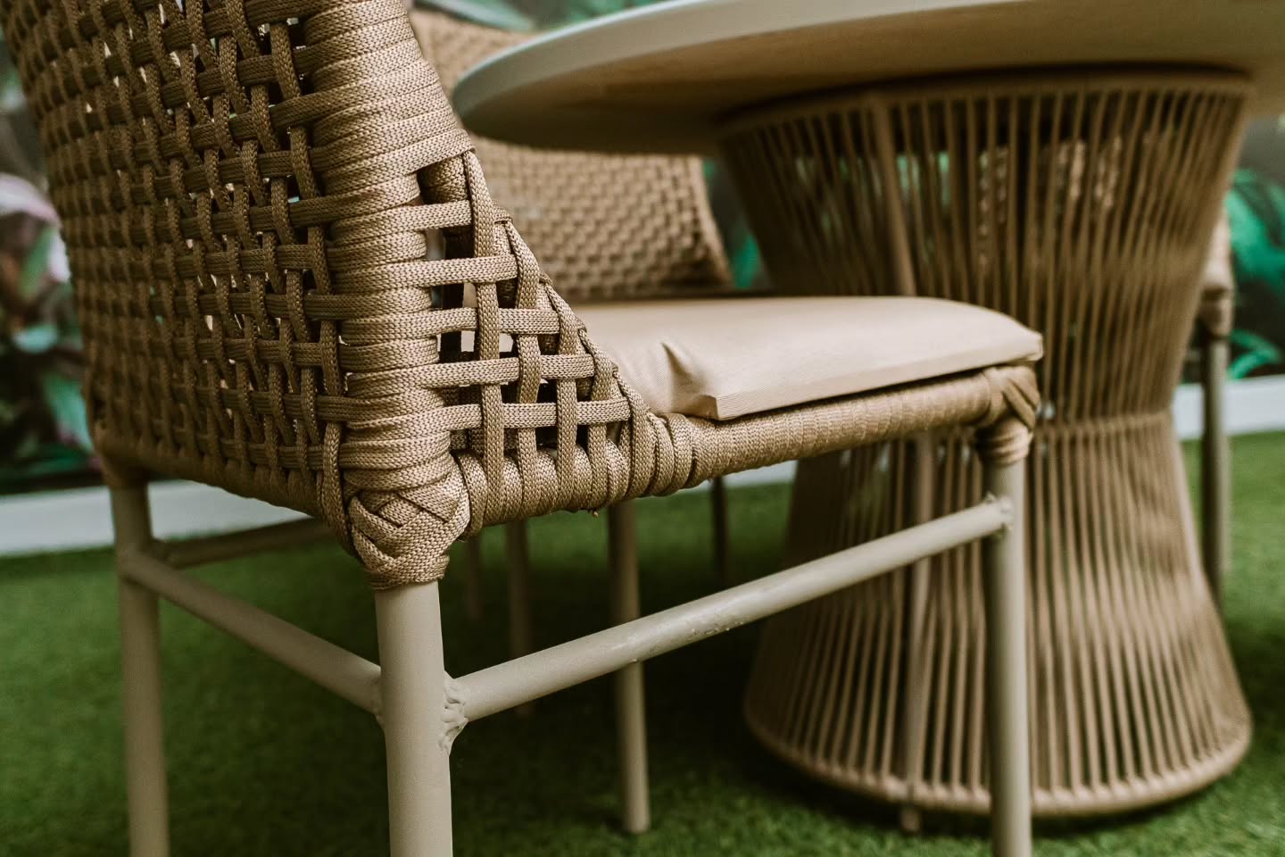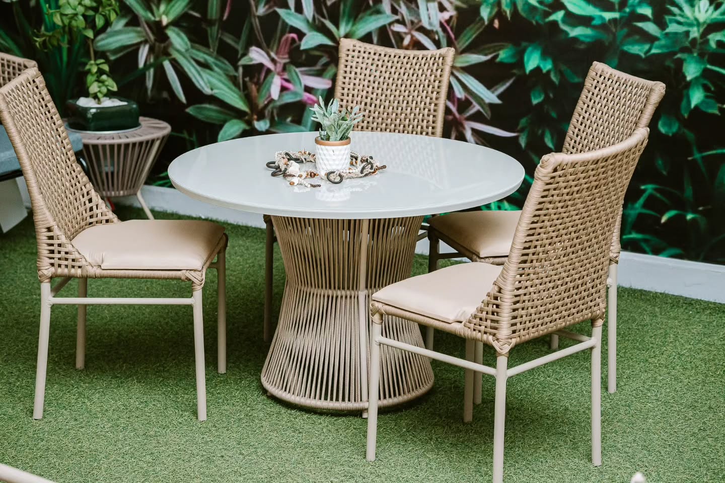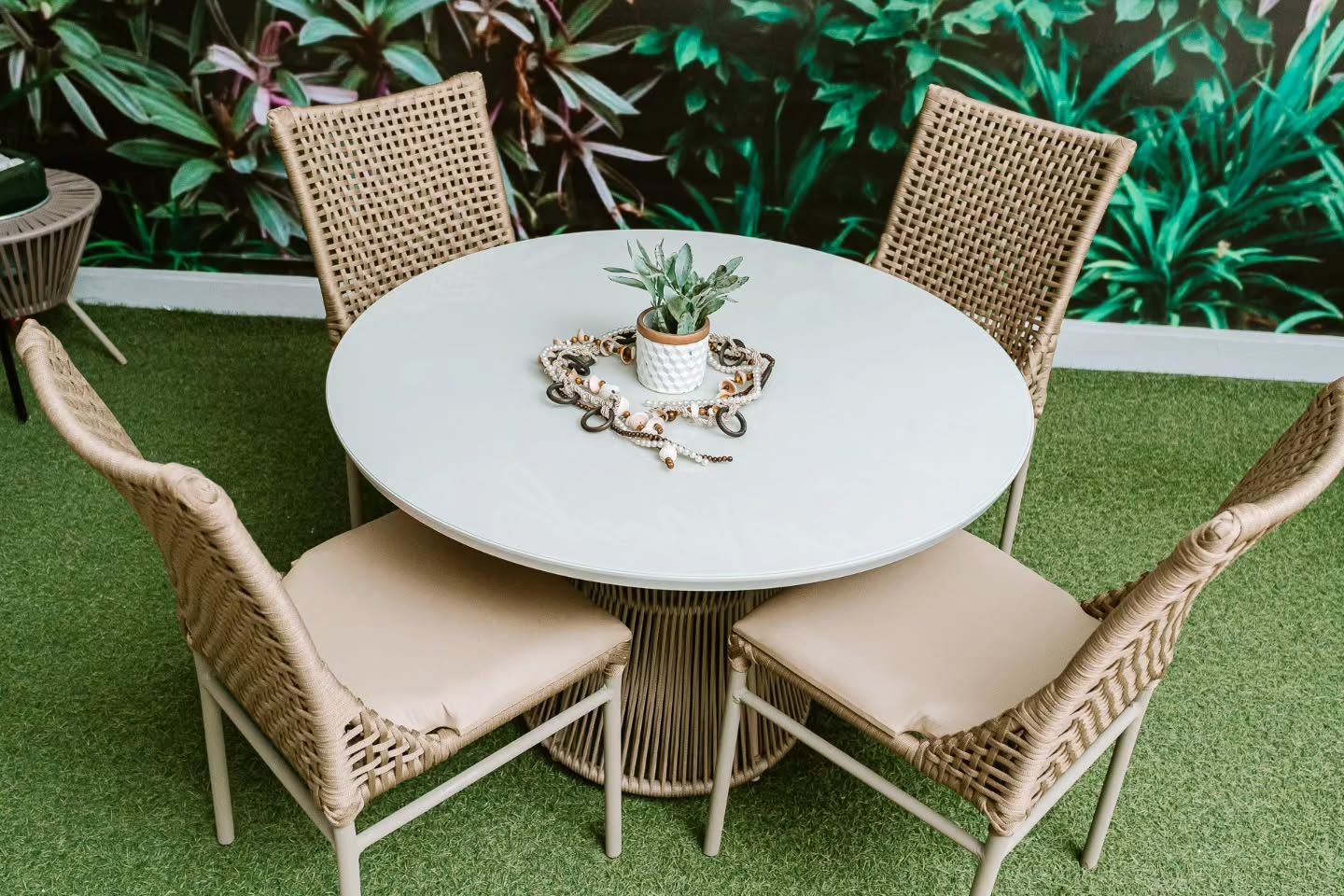 O Conjunto Jericoacoara reúne modernidade, versatilidade e conforto em uma composição elegante e funcional. Com diâmetro de 1,05 m, a mesa acomoda confortavelmente até quatro cadeiras, criando uma experiência acolhedora para diferentes ambientes. Sua estrutura em alumínio com pintura epóxi garante durabilidade e resistência, enquanto o acabamento em corda naval acrescenta um toque exclusivo e sofisticado ao design. Versátil e elegante, é a escolha ideal para transformar qualquer espaço em um ambiente convidativo e especial.