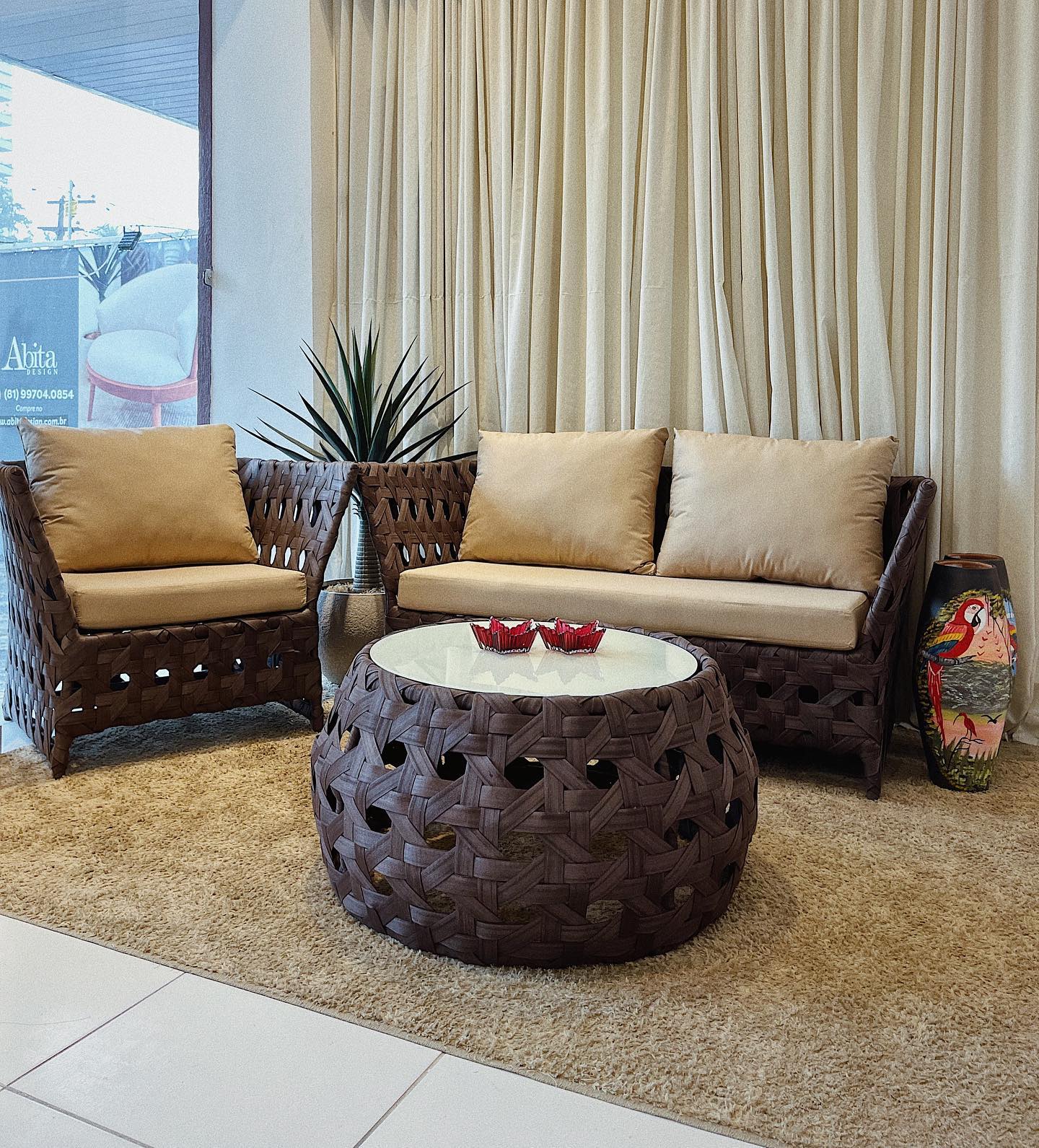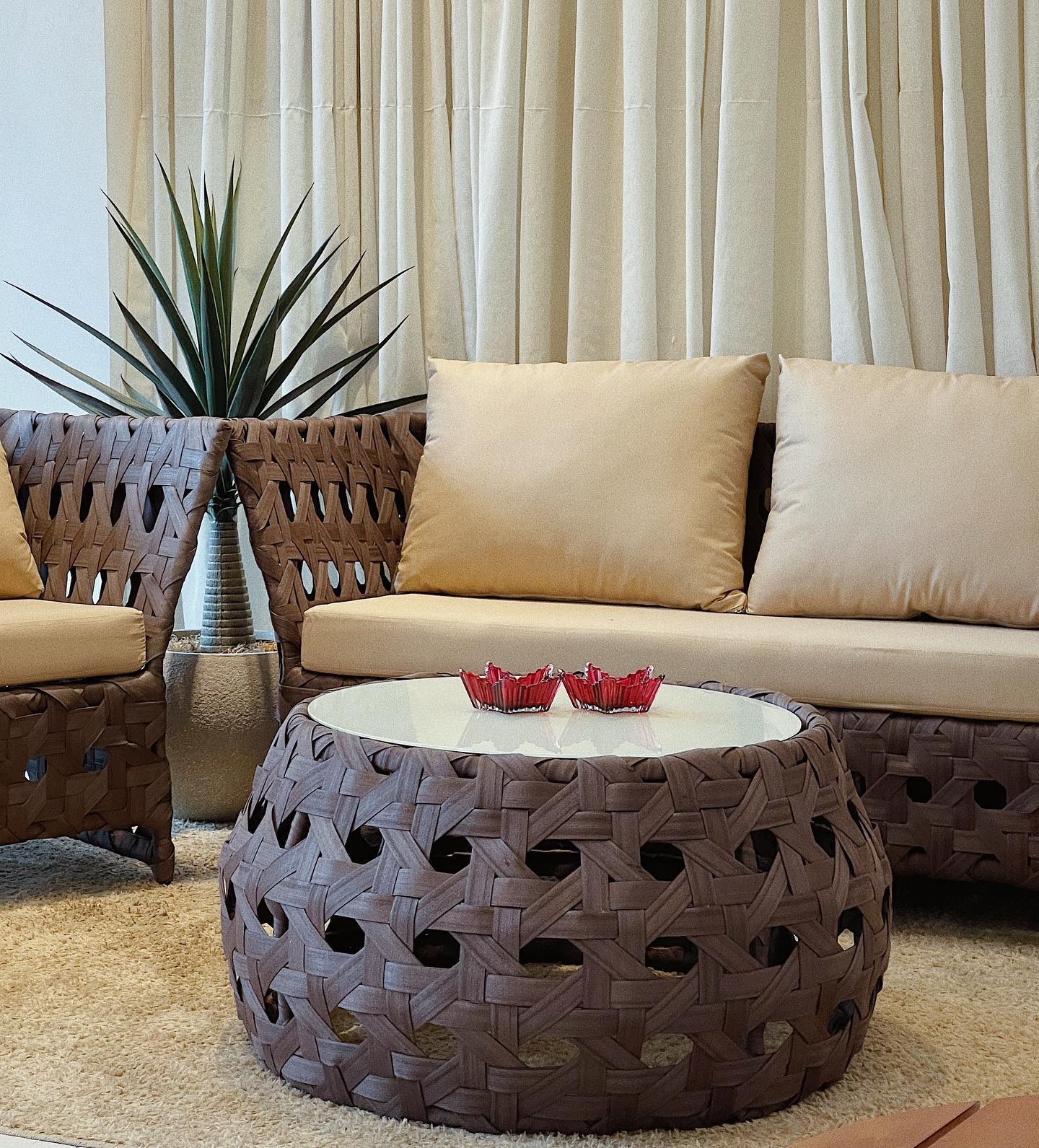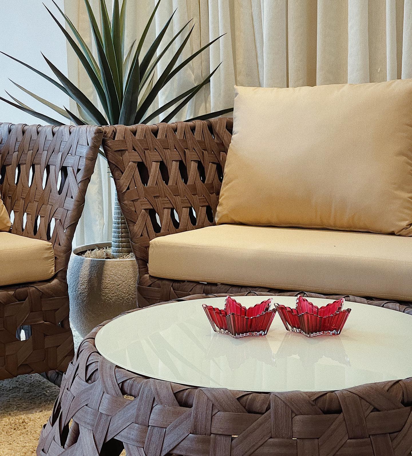 O Conjunto Lília foi pensado para criar um ambiente reservado, calmo e acolhedor em áreas externas. Seu design personalizado alia conforto e elegância, proporcionando um espaço ideal para relaxar e aproveitar bons momentos ao ar livre.