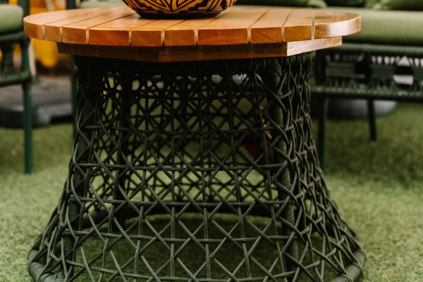 As cadeiras, com estrutura em madeira maciça e tela natural, complementam a composição com leveza e um charme artesanal, tornando o conjunto ideal para quem busca beleza, resistência e versatilidade no dia a dia.