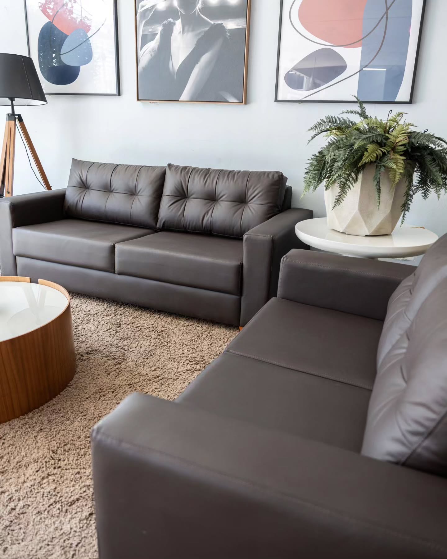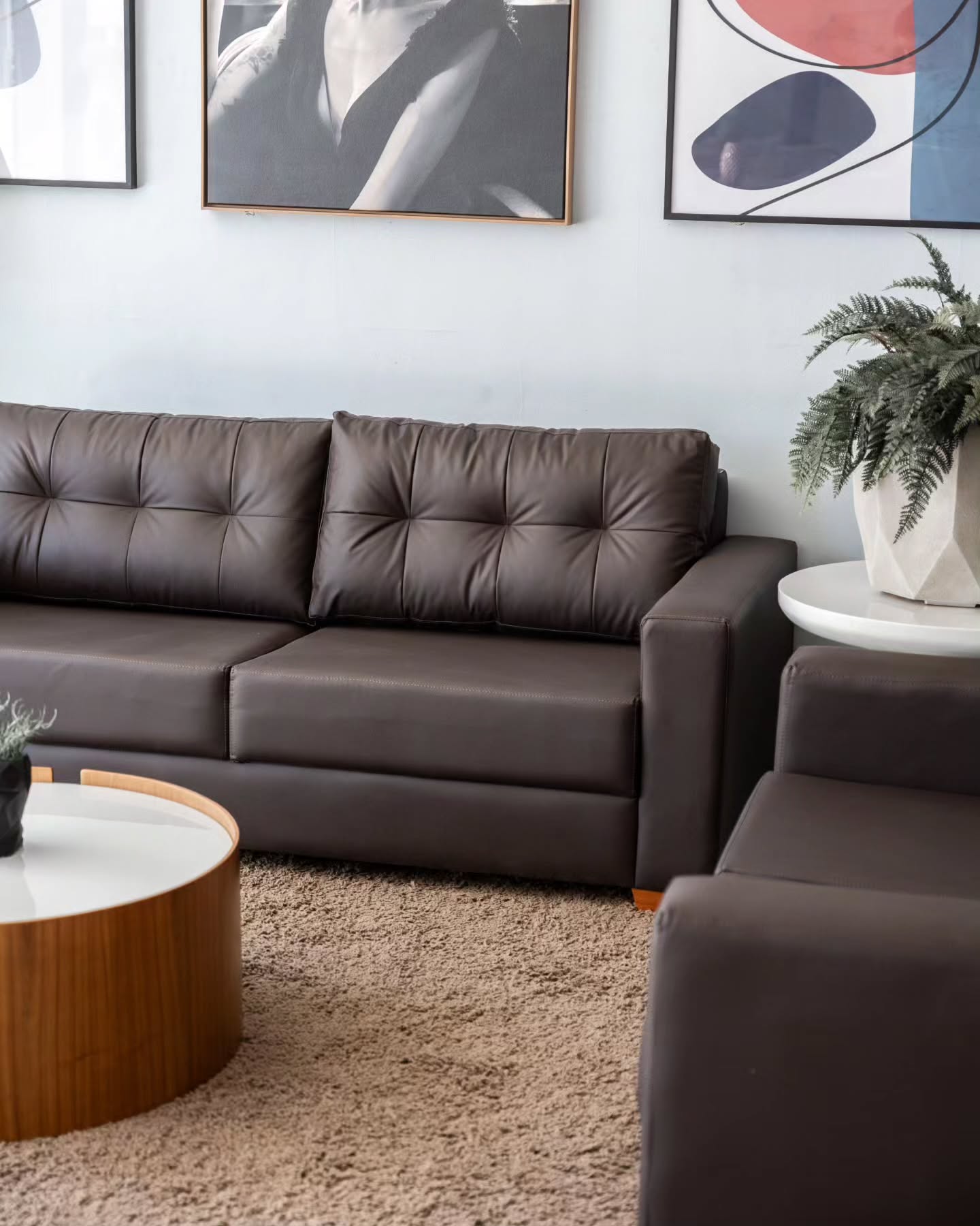 O Conjunto de Sofá Dakota transforma sua sala em um verdadeiro refúgio de conforto e elegância. Produzido com estrutura em madeira de eucalipto, revestimento em couro ecológico e almofadas de encosto com fibras de silicone, o conjunto oferece maciez, durabilidade e excelente acabamento. Disponível nas versões de 3 lugares com 2,00 m ou 2 lugares com 1,52 m, adapta-se perfeitamente a diferentes tamanhos de ambiente. Com opções de cores chocolate, preto e nude, é a escolha ideal para quem busca conforto absoluto e sofisticação no dia a dia.