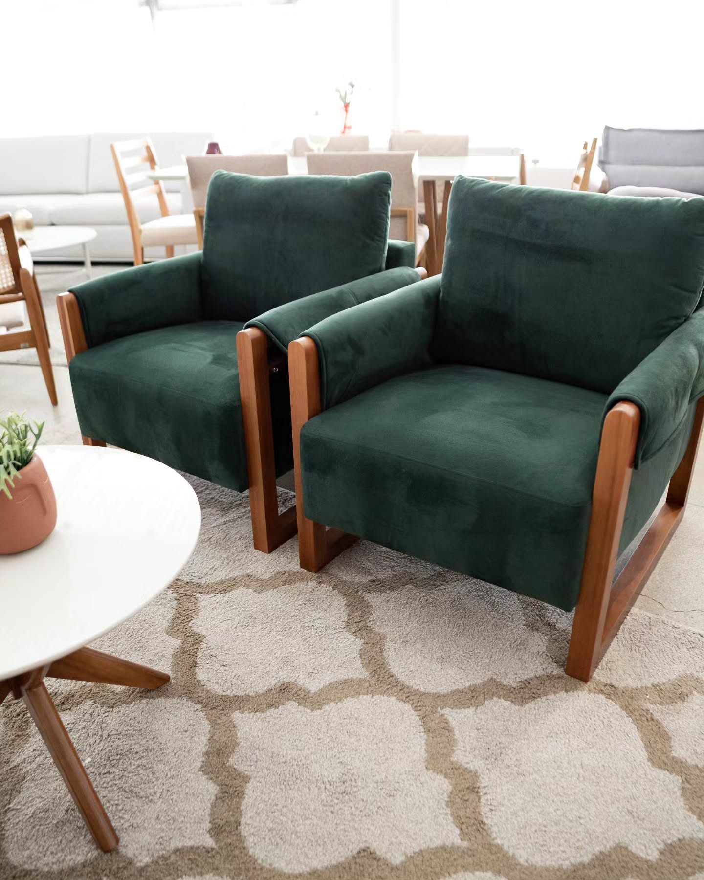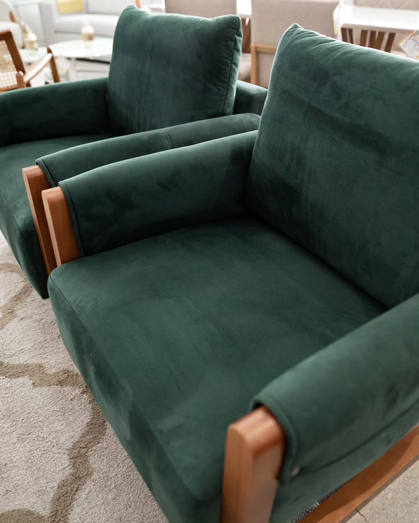 Com molas ensacadas no assento e almofadas soltas com fibras de silicone, o sofá e a poltrona proporcionam uma experiência única de relaxamento, unindo maciez, suporte e bem-estar. Cada detalhe foi pensado para oferecer conforto prolongado sem abrir mão do design.