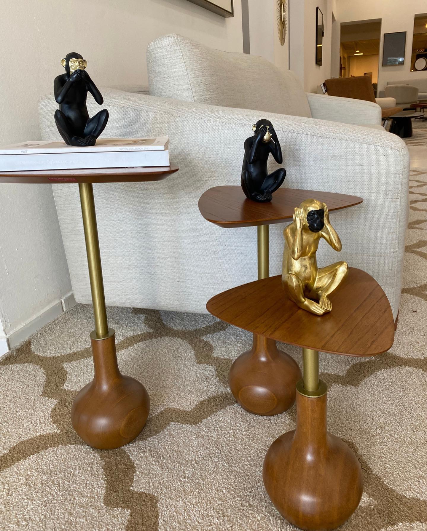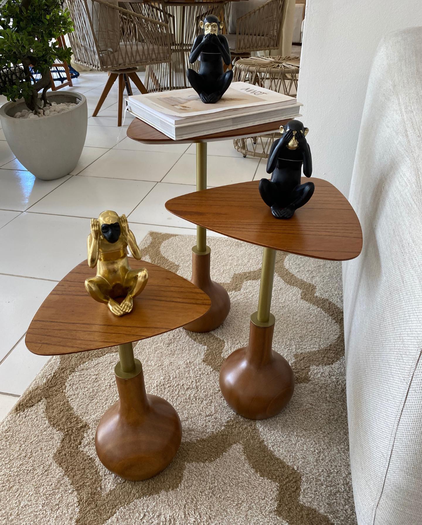 Disponível em três tamanhos, a Mesa Quézia pode servir como apoio em um cantinho especial, na lateral do sofá ou simplesmente ser exposta como um objeto de design diferenciado. Seu formato versátil permite composições modernas e elegantes em diversos ambientes.