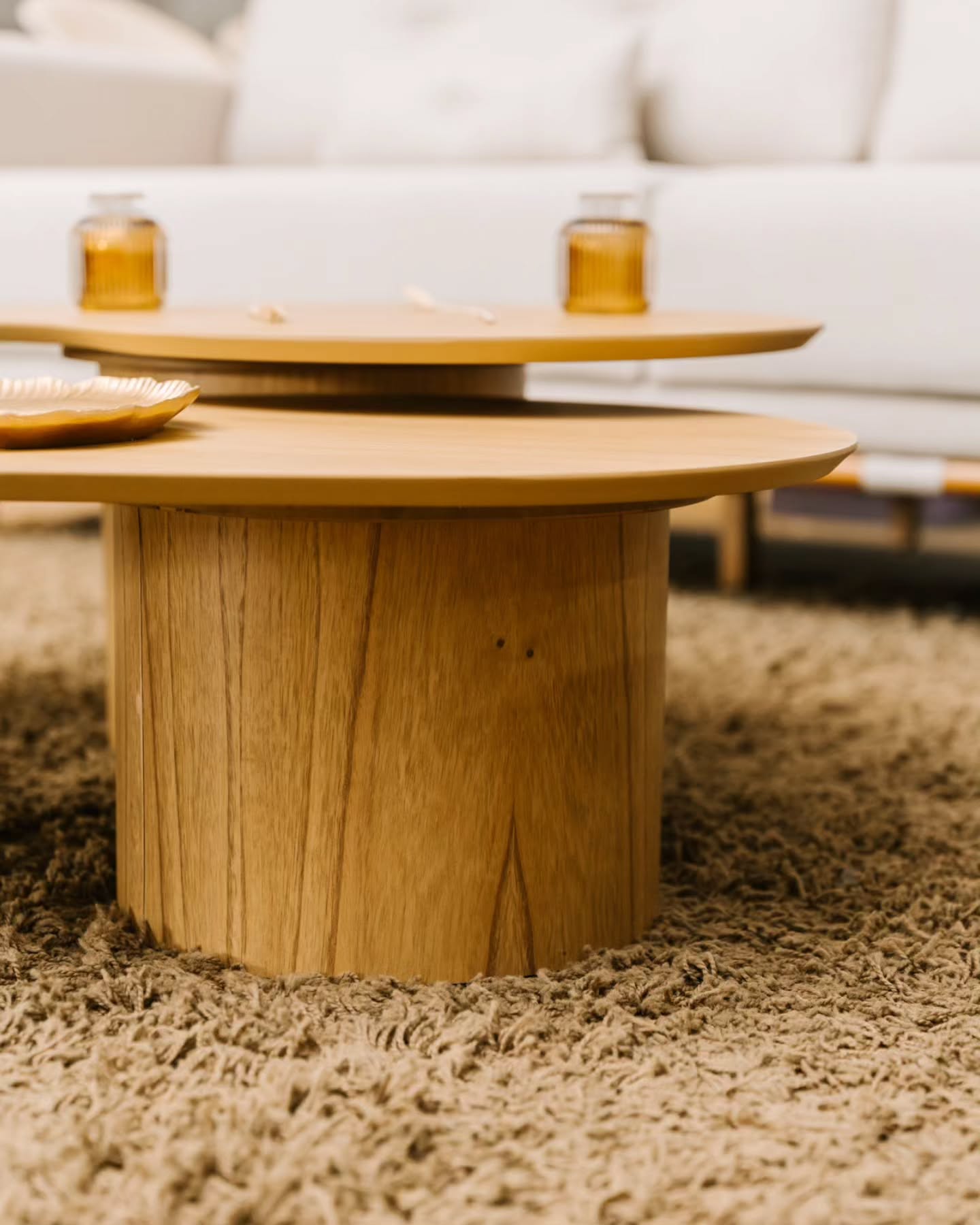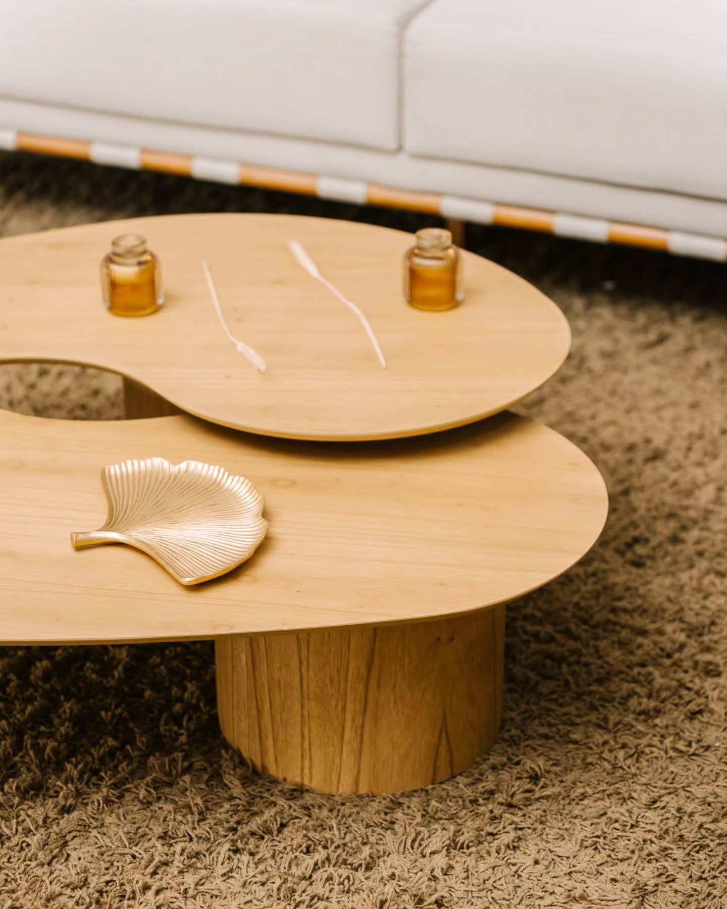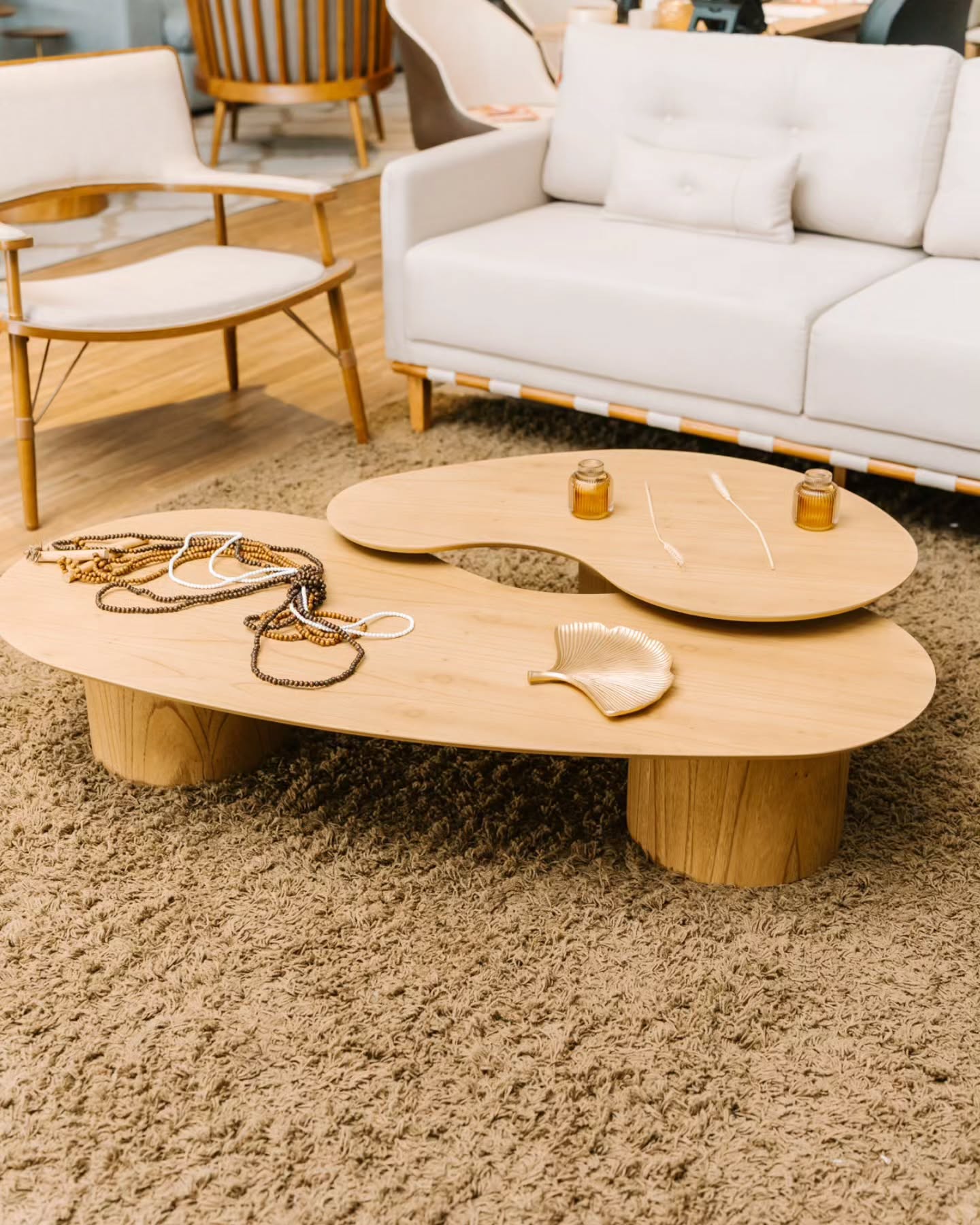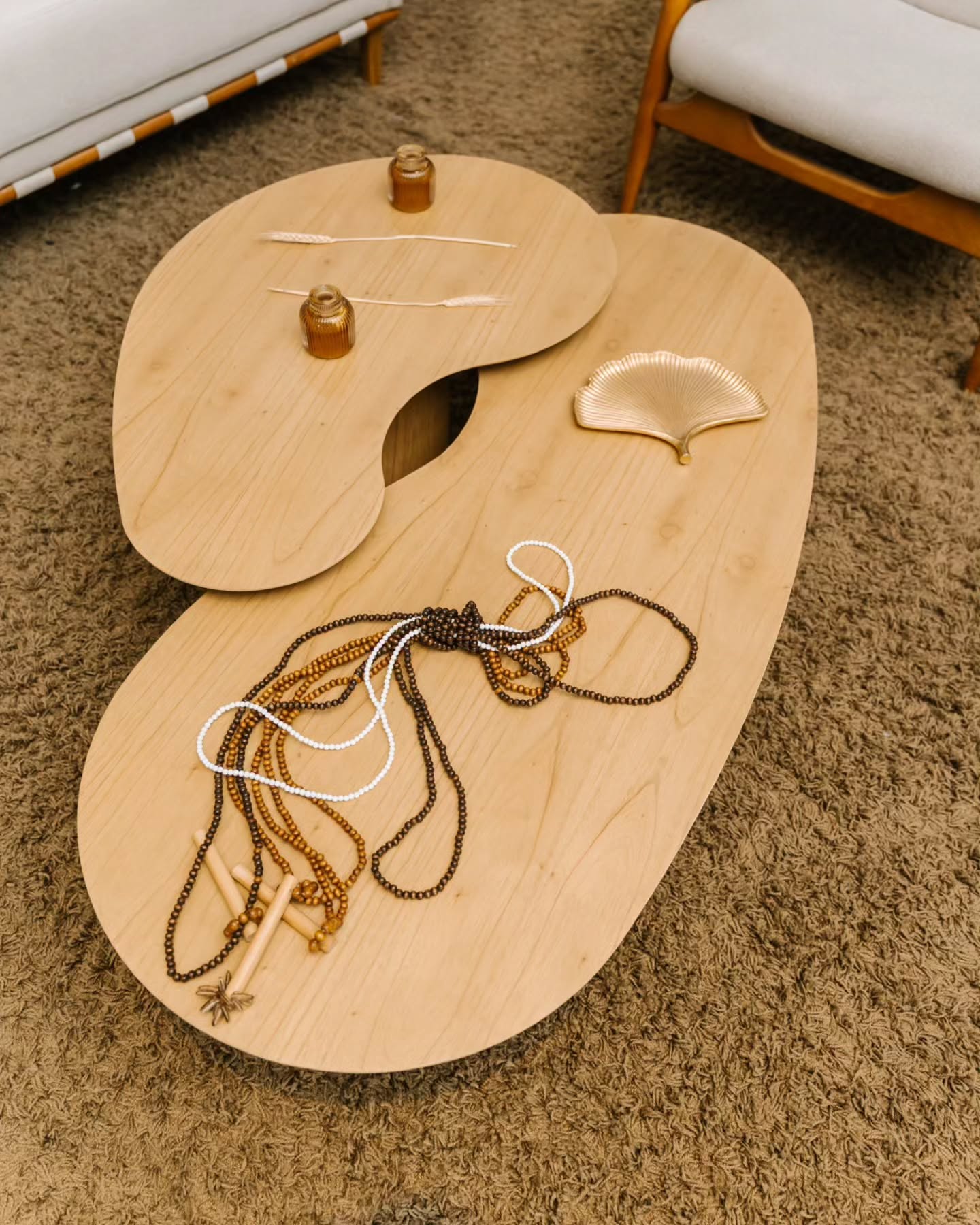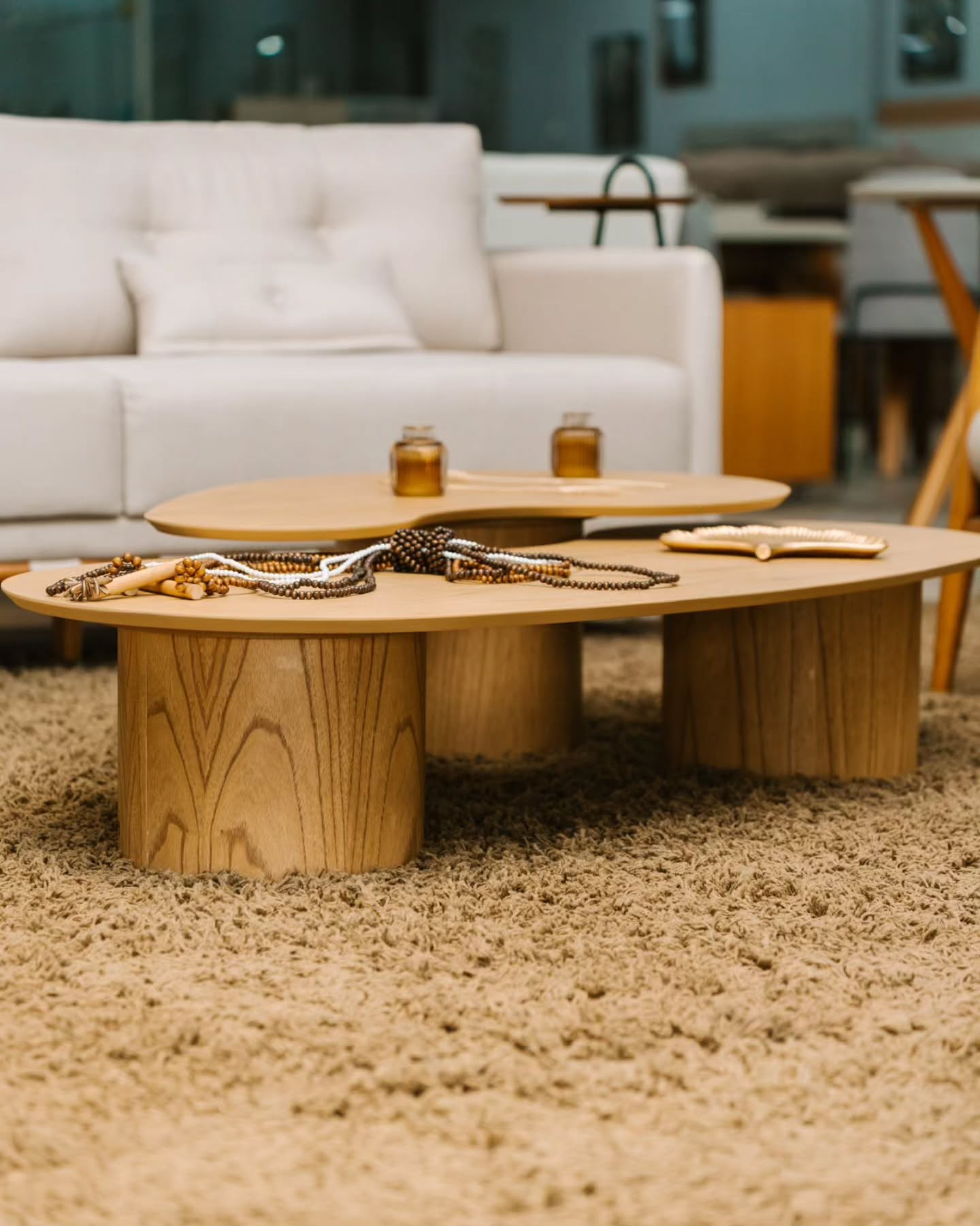 A composição de Mesas de Centro Orgânicas traz um toque de elegância natural para o ambiente. Produzidas em madeira de cerejeira, as peças se destacam pelas linhas suaves, formas fluidas e design contemporâneo. As curvas orgânicas criam movimento e harmonia, transformando o espaço em um cenário sofisticado e acolhedor. Além do forte apelo visual, as mesas são versáteis e funcionais, ideais para salas de estar, lounges e ambientes corporativos que valorizam autenticidade e estilo.