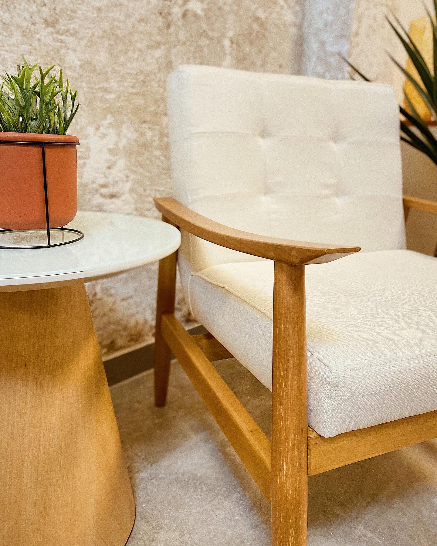 A Poltrona Bel é elaborada em madeira e pensada para oferecer conforto e elegância no dia a dia. Seu design conta com uma leve inclinação, que proporciona uma postura mais relaxante e agradável, tornando a experiência de uso ainda mais confortável. Com visual atemporal e acabamento refinado, é ideal para compor ambientes acolhedores e sofisticados.