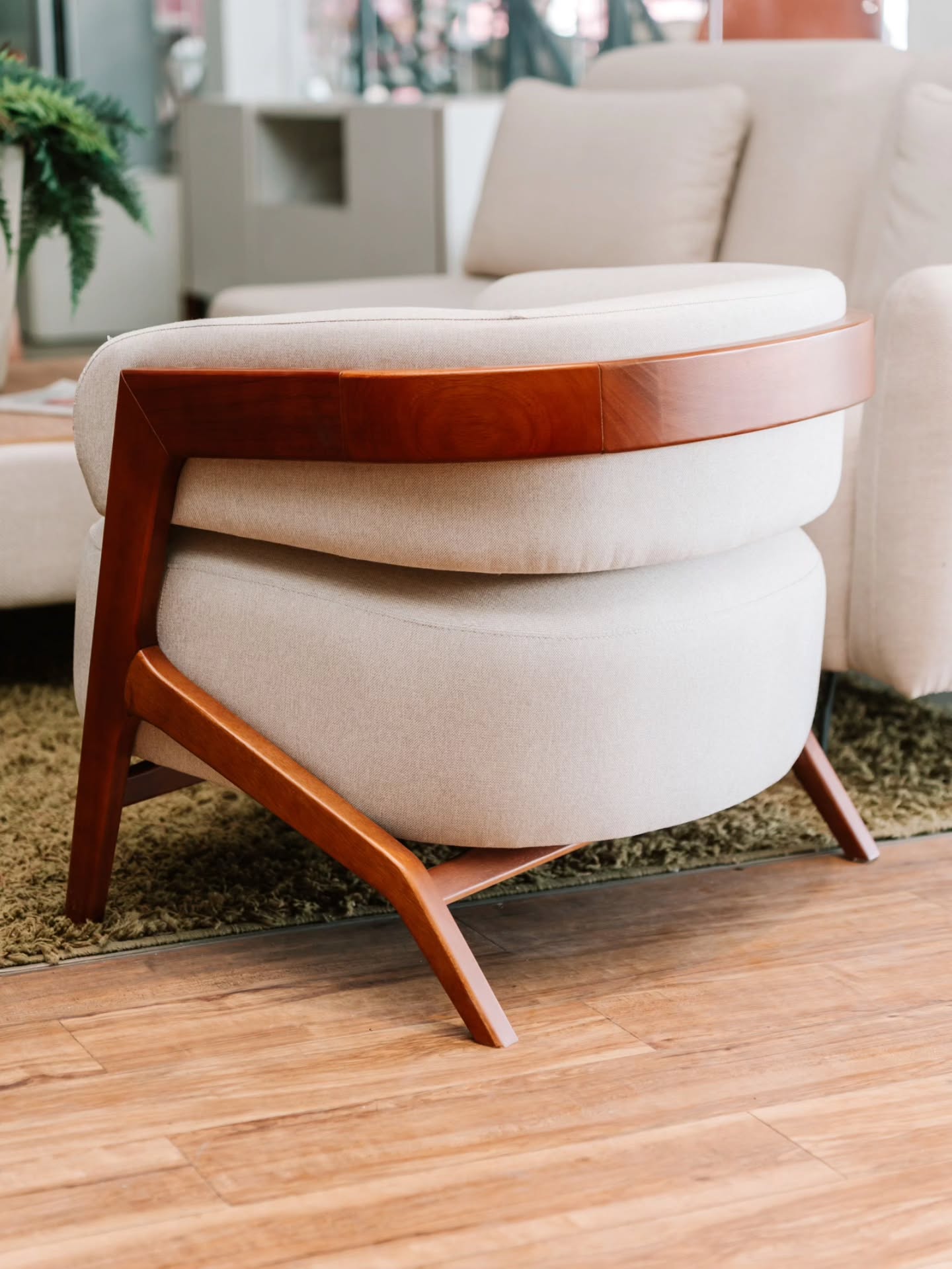 Sua estrutura resistente garante durabilidade, enquanto o estofamento proporciona aconchego para momentos de descanso ou recepção.