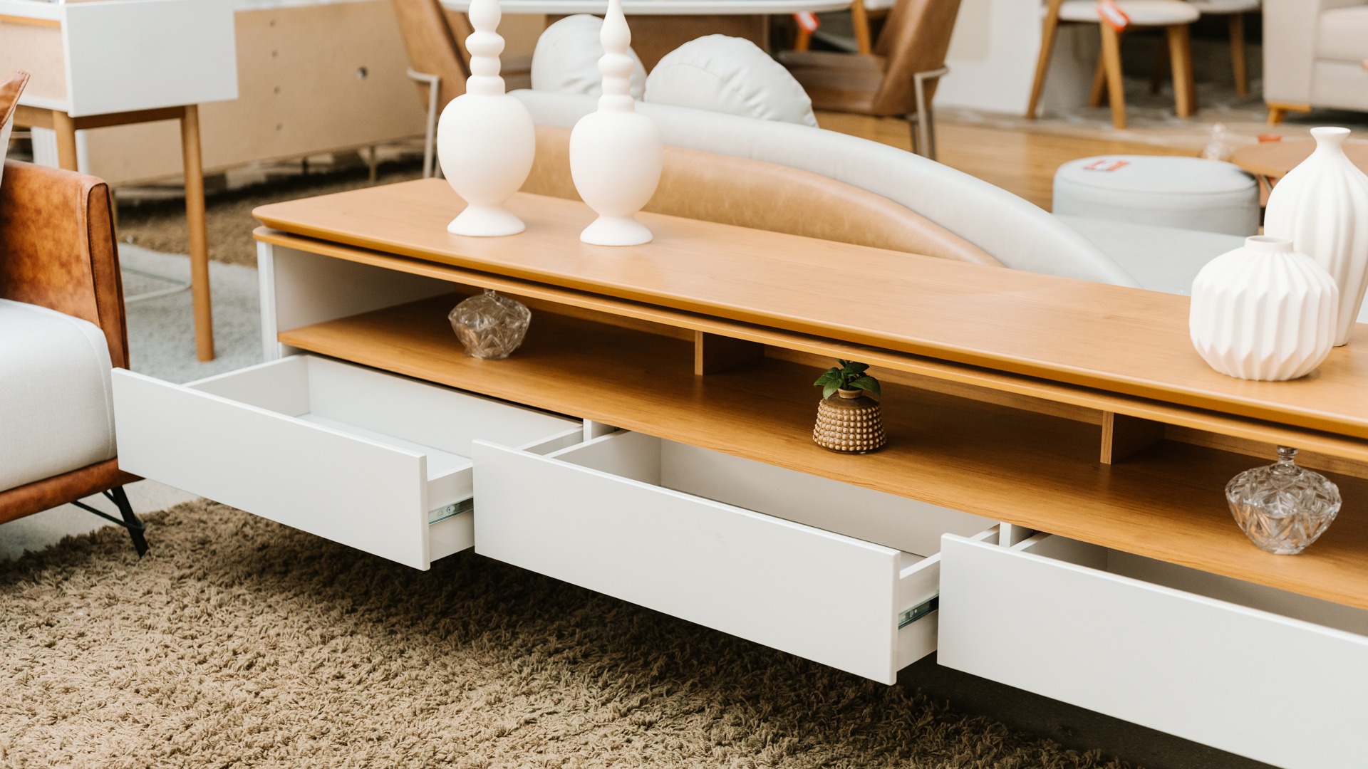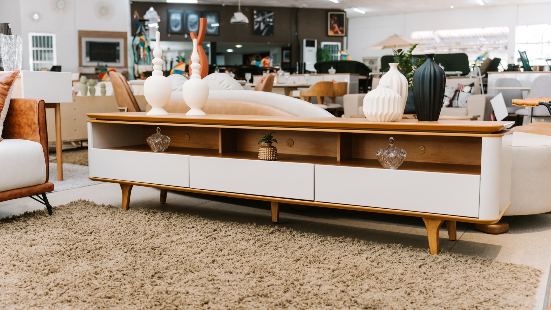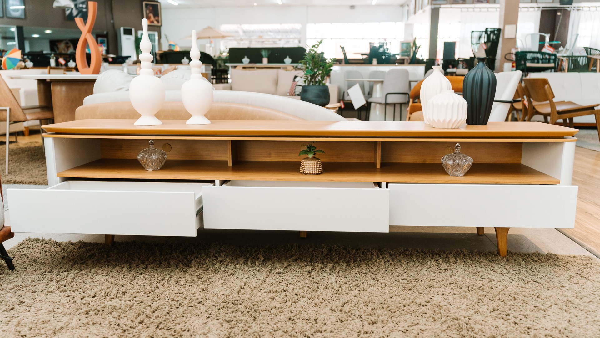 O Rack Ravi 2,20 m representa o equilíbrio perfeito entre forma e função. Com madeira de alta qualidade e bordas arredondadas, o design transmite leveza e fluidez ao ambiente. Suas três gavetas com corrediças telescópicas oferecem praticidade e organização sem abrir mão do estilo. Produzido em MDF com acabamento impecável, é uma peça versátil, ideal para apoiar a TV, expor objetos decorativos ou manter tudo no lugar, valorizando o espaço com personalidade e elegância.